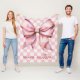 Trendy Pink Bow Personalised With Name Monogram Fleece Blanket