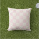Modern Trendy Blush Pink and Warm White Checkered outdoor pillow in a light, airy, soft pastel with a clean modern feel — perfect for warm-weather checkered trendy décor. Give you outdoor summer decor a retro look with this pastel check pattern in a soft pink and off-white color combination.
