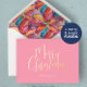 These trendy non photo Christmas cards feature the words "Merry Christmas" in elegant gold foil script typography over a solid pink background. Use the template fields to add your personalisation. The card reverses to a unique and colourful watercolor poinsettia floral pattern. A unique and bright choice for your pinkmas holiday greeting cards. To see more designs like this visit www.zazzle.com/dotellabelle