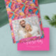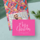 These trendy Christmas cards feature the words "Merry Christmas" in elegant script typography. Use the template fields to add your personalisation. The card opens to a unique and colourful watercolor poinsettia floral pattern with your photo and custom greeting. A unique and bright choice for your pinkmas holiday greeting cards. To see more designs like this visit www.zazzle.com/dotellabelle Original watercolor art by Victoria Grigaliunas of Do Tell A Belle.