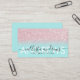 This is the perfect business card for a trendy, stylish, girly, and modern Hair Stylist. This design features a simple black handwritten typography on a faux printed pink sparkly glitter and mint aqua green ombre gradient glamourous and chic background. Whether you are an independent hairstylist or makeup artist, or you work for a salon these cards will add that personal and professional touch to your business and career advertisement.