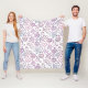 Halloween themed throw blanket with a trendy pink and purple ghost pattern. Design printed on both sides with a white background.