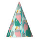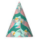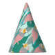 Trendy Pink Rainbow Finch Bird & Green Foliage Party Hat