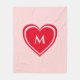 Trendy Pink Red Heart Monogram Valentine`s Fleece Blanket