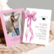 Trendy Pink Rose Bow Ribbon PHOTO Graduation Party Invitation
