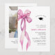 Trendy Pink Rose Bow Ribbon PHOTO Graduation Party Invitation