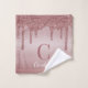 Trendy Pink Rose Gold Glitter Sparkle Drips Bath Towel Set featuring your custom name and monogram on a background of girly faux glitter drips. Perfect for your glitter aesthetic.
