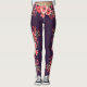 Trendy leggings with a watercolor pink flowers design with a deep purple background.