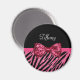 Trendy Pink Zebra Print FAUX Glitz Bow With Name Magnet