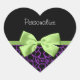 Trendy Purple And Black Giraffe With Green Ribbon Heart Sticker
