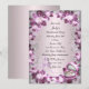 Pretty purple flowers on a purple background. This is a nice way to gather all the girls for the final fling before the ring! This beautiful invitation card is all ready to be personalised. Personalise the card by changing the text in the fields provided front and back. You can change font style, size, and colour, as well as paper type and style.