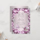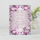 Pretty purple flowers on a purple background. Make sure you set the tone for your elegant upcoming bridal shower by sending these enchanting bridal shower invitations. This beautiful shower invitation card is all ready to be personalised. Personalise the card by changing the text in the fields provided front and back. You can change font style, size, and colour, as well as paper type and style.