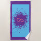 Trendy Purple Pink Splash Design Monogrammed Beach Towel