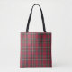 Trendy and chic red and green tartan pattern with simple monogram, tote bag.