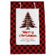 Trendy red black plaid Christmas bag editable name