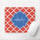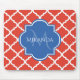 A trendy orange-red Moroccan quatrefoil pattern mousepad with a blue badge you can personalize by adding your name and monogram initial to. This is part of the Cherry Tomato and Palace Blue Spring Quatrefoil Collection