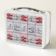 This is a standard metal lunchbox that appears to work just fine. We designed this box ourselves with an uploaded photo and custom text on the front and back. It looks absolutely beautiful except the front of the lunchbox is not centered like it shows in the photo. The print borders don't align with the inset flat part of the box where the preview photo online showed it perfectly centered in there. The back looks nice and centered though.