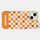Make a bold statement with this custom phone case featuring a trendy chequerboard pattern in vibrant orange, pink, and cream hues. Personalise it with your name in a fun retro font for a playful and unique touch. Perfect as a girly gift idea for someone who loves bold, retro-inspired designs, this case combines eye-catching style with durable protection.
