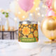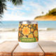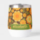 A bold, floral design with colourful shades of gold, orange and green with a fun colour block to add your name or any text. The crazy flower pattern has a variety of colours.