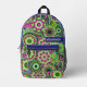 A bold, floral design with colourful shades of blue, purple and green with a fun colour block to add your name or any text. The crazy flower pattern has a variety of colours.