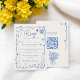 Trendy retro French blue illustrated wedding QR RSVP Card