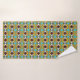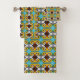 Trendy retro pattern in yellow, blue, brown, white bath towel set
