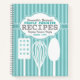 Fun retro/vintage look kitchen utensils and striped on this personalised recipe spiral-bound (lay flat) notebok - customise the text to make this awesome recipe book entirely unique! The perfect gift for a newlywed, mum, or grandmother!