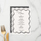 A trendy wavy border handwritten scribble style wedding menu card following the latest trend in wedding stationary.