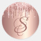 Trendy Rose Gold Glitter Drips Graphic Monogram Classic Round Sticker