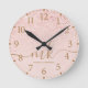 Trendy Rose Gold Glitter Fancy Initials and Name Round Clock