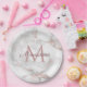 Trendy Rose Gold Marble Design Monogram Template Modern Elegant Classic Round Paper Plate.