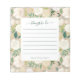 This beautiful notepad features a lovely white, ivory, and green watercolor floral pattern with trendy script on a beige kraft look background for a feminine, rustic style that also features a to-do list with lines of tasks to fill out.