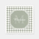 Trendy Sage Green Checked Monogrammed Name Napkin