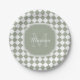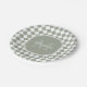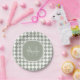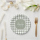 Trendy Sage Green Checked Monogrammed Name Paper Plate