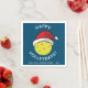 Trendy modern Pickleball Christmas holiday party napkin. Yellow pickleball ball with a red Santa hat. Happy Holidays!