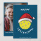 Trendy modern Pickleball Christmas holiday photo card. Yellow pickleball ball with a red Santa hat. Large photo on back with personal holiday message. Rounded modern minimalist typography. All text areas fully personalizable. Contact for assistance in personalising or customising to your individual wishes. Happy Holidays!