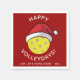 Trendy modern Pickleball Christmas holiday party napkin. Yellow pickleball ball with a red Santa hat. Happy Holidays!