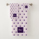 The Trendy Script Initial Flowers Blush Violet Striped Bath Towel Set is part of the "Stripes and Flowers: Bath, Beach, Yoga, Travel" collection. The collection includes everything related to your bathroom, swimming at the pool or beach, relaxing there by journalling, doing yoga, playing cards or frisbee. And, of course, travelling to the beach with your favourite backpack, matching toiletry bag, and electronics cases. There are also cards that celebrate meetings and give you the opportunity to invite your new acquaintance to connect virtually. The playful design features purple stripes with alternating rows of purple flowers. Your initials in trendy script is printed on top and bottom of face cloth, hand towel and bath towel. Add your initials to make it yours. For custom design enquiries or assistance with customisation, please contact us at info@KBMD3signs.com.