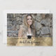 This elementary school/middle school/high school/college/university graduation announcement features a gold header with cap and diploma graphic which cannot be edited, moved, or deleted. It contains three photos in all (one in the front - landscape orientation) and two small portraits in the back. You are able to customise a part of the design to fit the graduate's needs. You can only customise the wording.
