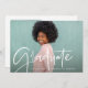 This trendy, elegant 2022 graduation announcement features two photos of the college or high school graduate. Casual, modern white script appears on an overlay along with two photos of the graduate. You can adjust the wording on the back of the card to make this either a simple graduation announcement, or a grad party invitation. A stylish and simple graduation design for the class of 2022!