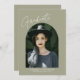 This graduation announcement features the text Graduate in a large trendy script typography above a photo of your graduate within an arch. Customise the text below with your graduate's name, school, and class of details. The back features a photo and room for you to include a message about what your graduate will be doing in the upcoming years!
