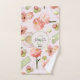 In gentle shabby chic colours of vintage pink and green and with a round pink and green badge with a monogram.