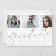 Trendy Silver Foil Script 3 Photo Graduation Announcement