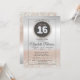 Glitter bokeh ombre on silver Sweet 16 birthday party invitation.