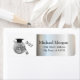 Elegant silver graduation return address label with graduation cap, disco ball and wine bottle.