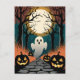 Trendy spooky Halloween Pumpkin Ghost Moon forest Postcard
