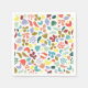 Colourful random scattered pattern of organic shapes in Flat Design style. Crescents, blobs, foliage, footprints and spots in trendy colours of red, green, blue, orange, yellow and gold. Trendy Stylish Colourful Organic Patterned Cocktail Napkins.