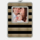 trendy stylish geometric black and gold stripes silver plated framed ornament