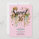 Trendy Sweet 16 Leopard Print Green Pink Gold Invitation