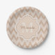 Trendy Tan Brown Chevron Zigzag Name and Monogram Paper Plate